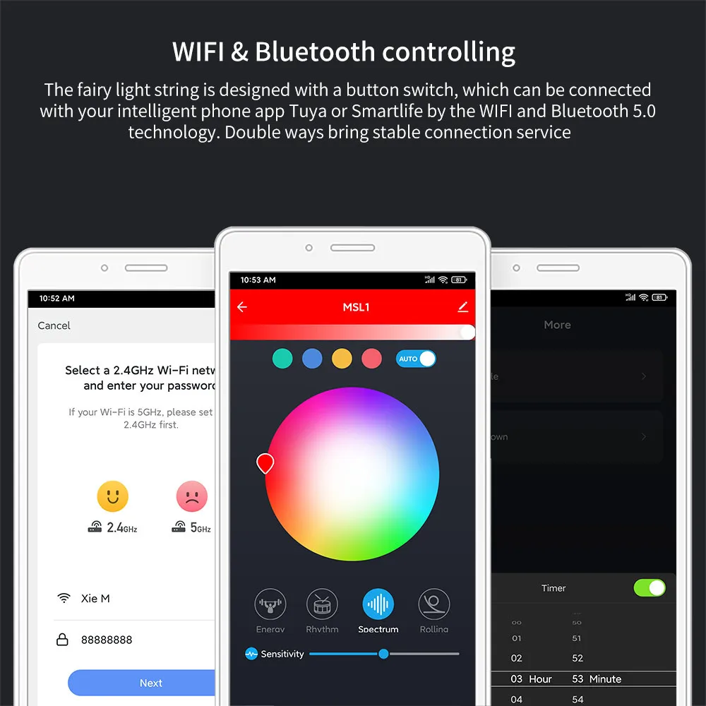 Умный красочный светильник может обеспечить 16 миллионов цветов, 8 сцен и 4 музыкальных режима.В светильник строка контроллер имеет встроенный высокочувствительный микрофон, что может привести к тому, что светильник из светильник строка изменяться при попадании окружающий звук. Откройте свой список любимых песен, и светильник будет звучать в ритме с музыкой, создавая Лучшие вечерние ощущения.Методы управления струной светильник разнообразны и просты. Пульт дистанционного управления может быстро регулировать свет, и вы получаете то, что хотите; Мобильное приложение может внести более изысканные корректировки на свет, кнопки на контроллере позволяют спокойно решать различные неожиданные ситуации. Светильник имеет функцию памяти. После выключения, а затем снова включения, светильник по-прежнему является последним заданным светильник. С функцией синхронизации светильник можно зажечь в любое время.Умный красочный светильник поддерживает Amazon ECHO, Google Home и другие голосовые колонки, а светильник можно управлять голосом.
