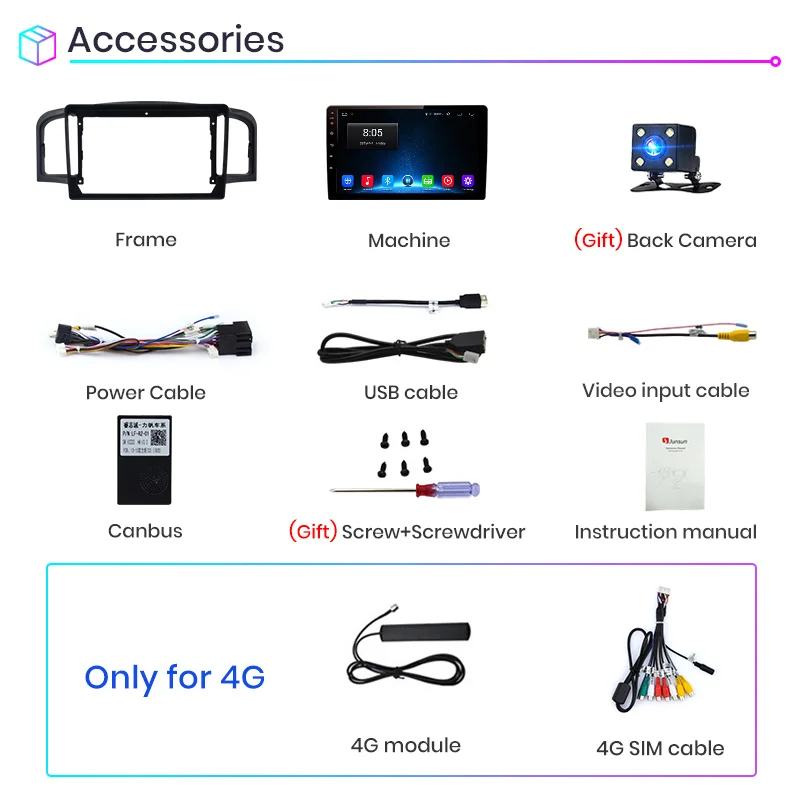 1). После поиска спутникового сигнала успешно в первый раз, время и дата будут обновлены;2). Обратите внимание, что операционная система и предустановленные приложения занимают часть памяти; Карта России занимает около 3 Гб; Карта Европы занимает около 7 Гб;1. В чем разница между WiFi и 4G версией?Устройство оснащено Навигатором, воспроизведением музыки, функцией парковки и т. д. для подключения к Интернету версии Wi-Fi должны служить вашим смартфоном в качестве точки доступа. Для владельцев автомобилей, которые часто используют Интернет во время путешествия, мы рекомендуем купить версии 4G.2. Если вам не нравится товар, возможно ли его вернуть?Если вы не удовлетворены товаром, вы можете вернуть товар, вернуть его на наш склад в России/Испании/Китае.3. Как настроить рулевое колесо управления> Версии WIFIНастройка -- Автомобильная развлекательная информация -- SWC -- сначала нажмите clearall --- затем нажмите на значки. Когда он мигает, нажмите кнопку на рулевом колесе, чтобы соответствовать значку. После успешного обучения цвет изменится.> 4G версииУстановка-genaral -- установка рулевого колесаПожалуйста, нажмите кнопку на рулевом колесе, и в то же время нажмите кнопку на экране, чтобы соответствовать, это изменит цвет после соответствия.Примечание: Если ваш заказ поставляется с canbus, пожалуйста, перейдите для настройки типа canbus, затем кнопка может работать, пожалуйста, свяжитесь с нашей службой поддержки клиентов для получения помощи.4. Как подключить заднюю камеру?1) красный кабель ① подключен к резервному светильник "+";2) черный кабель ② подключен к резервному светильник "-";3) кабель для обнаружения заднего хода ④ (коричневый цвет) подключен к красному кабелю ③, который удлиняется от входного кабеля видео;4) ⑤ кабель не должен быть подключен.