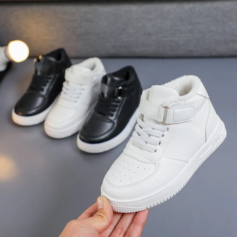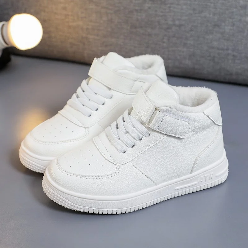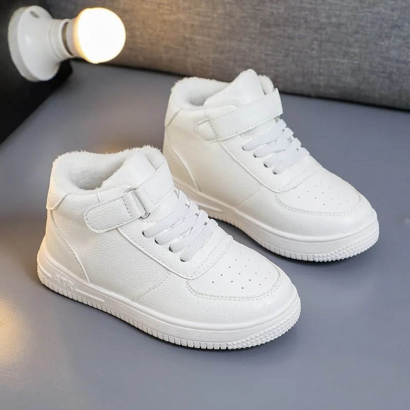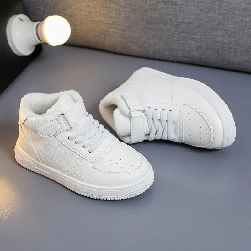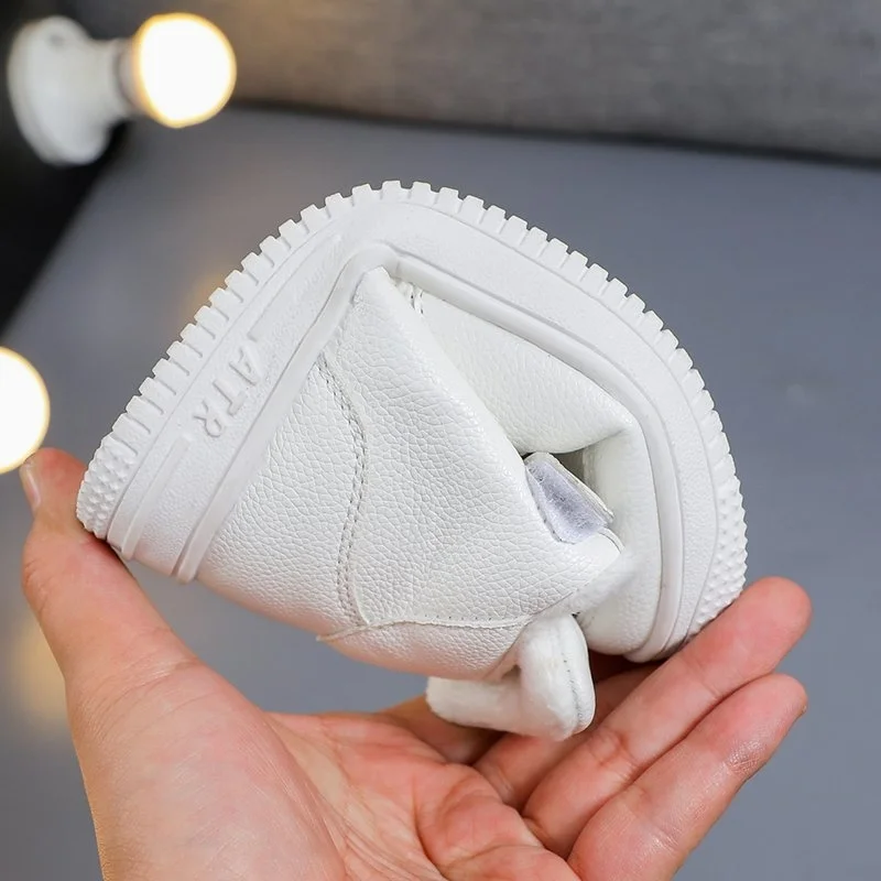 Детские кроссовки для мальчиков и девочек, повседневная спортивная обувь, Прогулочные дышащие кожаные, для бега, белые, Размеры 26-37