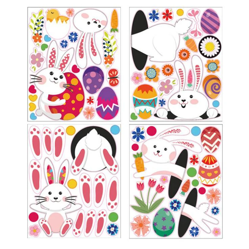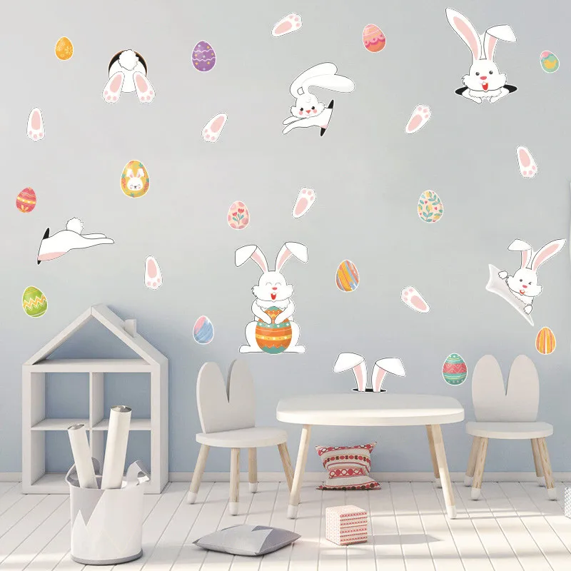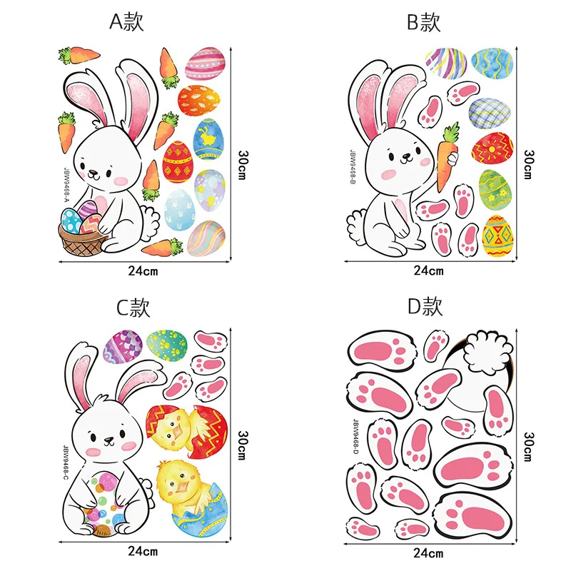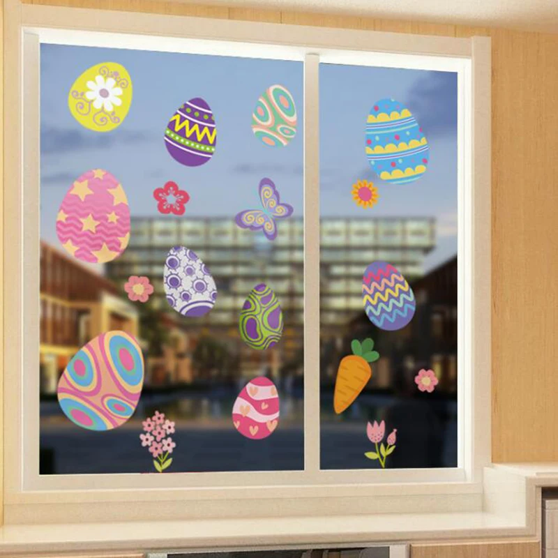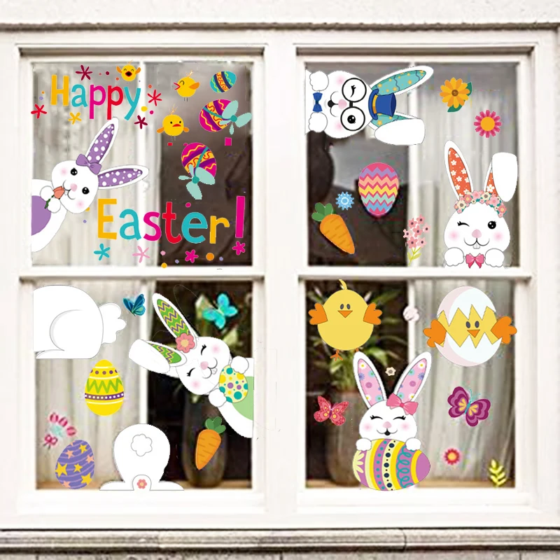 Счастливая Пасха, наклейка на окно, кролик, пасхальные яйца, морковка, Цыпленок, стеклянная наклейка, Пасхальная Наклейка на стену для вечеринки, пасхальные украшения для дома