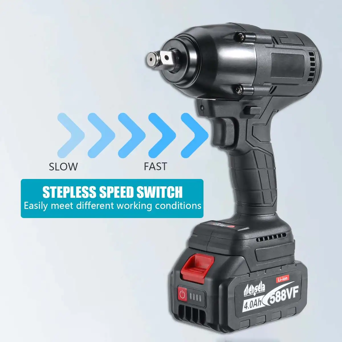 Особенности:● 2000N.M высокий крутящий момент, супер мощность● Функция блокировки безопасности, эффективная защита● Большой бесщеточный двигатель, высокая прочность, низкое тепловыделение, лучший эффект удара● Светодиодный светильник, удобный в темной рабочей среде● Плавное переключение скорости, легко подходит для различных условий работы● Подходит для строительных площадок, технического обслуживания, деревообработки и т. д.● Вал из вольфрамовой стали, высокая твердость и износостойкость● Два режима вращения, вращение назад/вперед● Эргономичная противоскользящая ручка обеспечивает комфорт и контроль● Цифровой дисплей батареи