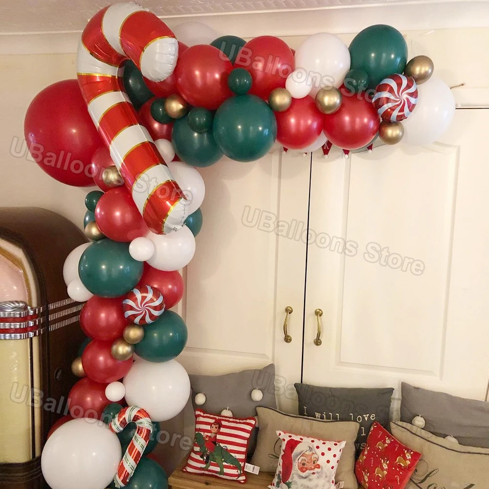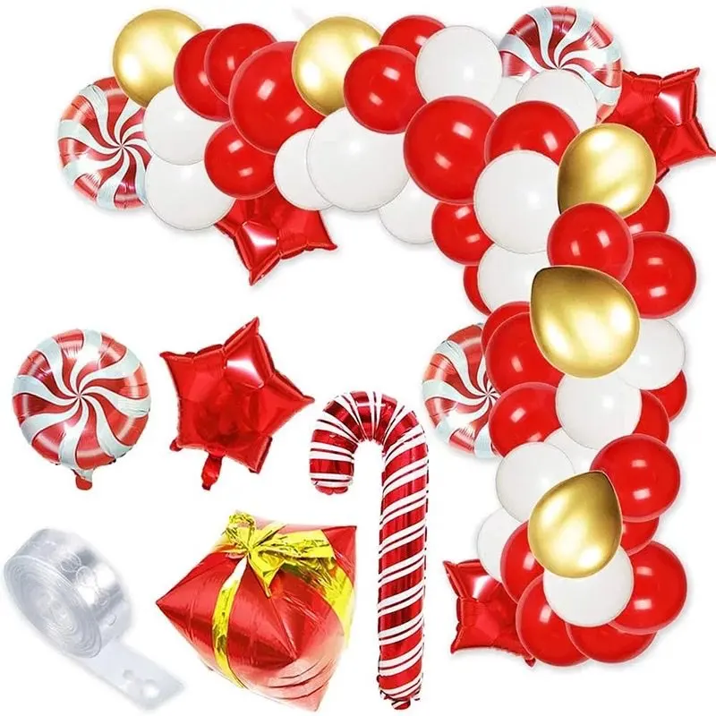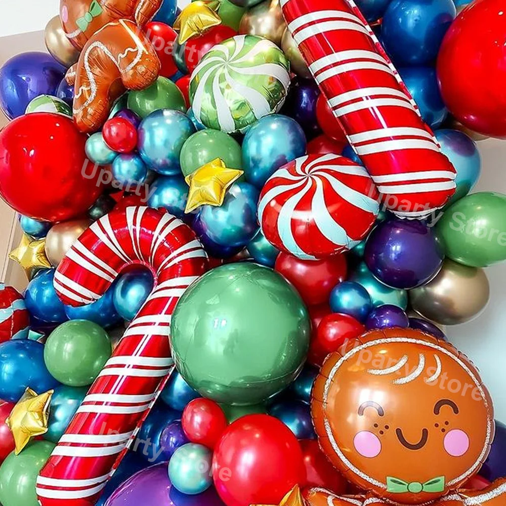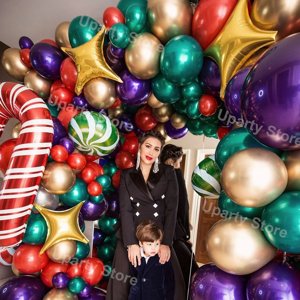 Рождественские воздушные шары, шары из фольги в форме ароки, конфет, тростника, красные, фиолетовые, хромированные, золотые, металлические, зеленые, латексные шары, рождественские украшения 2021