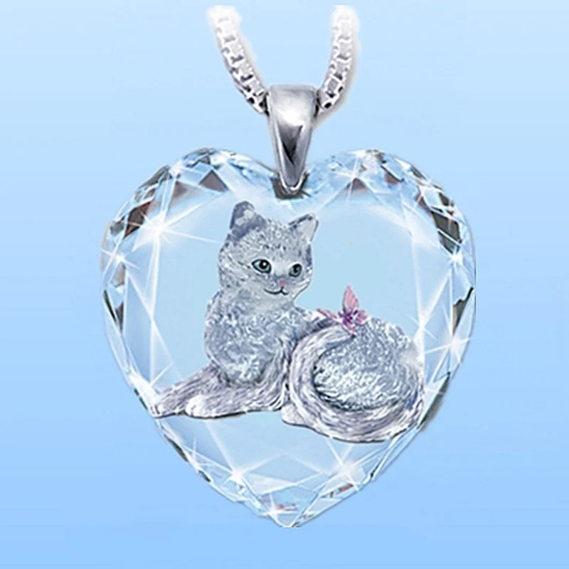 Ожерелье с подвеской в форме сердца из белого хрусталя с котом женс...