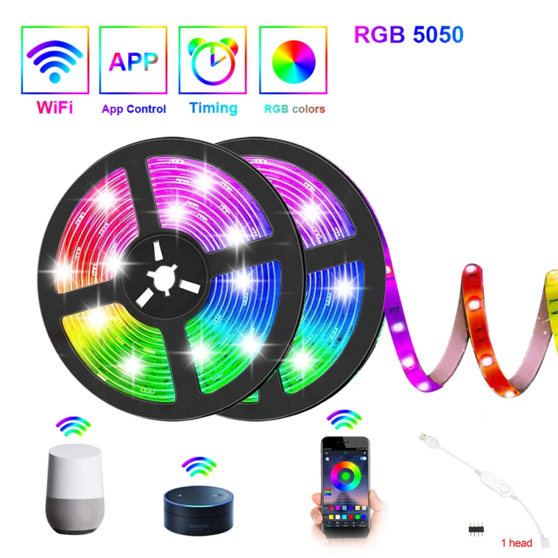 Tuya Wifi Светодиодная лента RGB 5050 1 м/2 м/5 м домашний Декор светодиодный светильник Светодиодная лента ТВ ПОДСВЕТКА светильник работа с Alexa Goggle Samrthome App