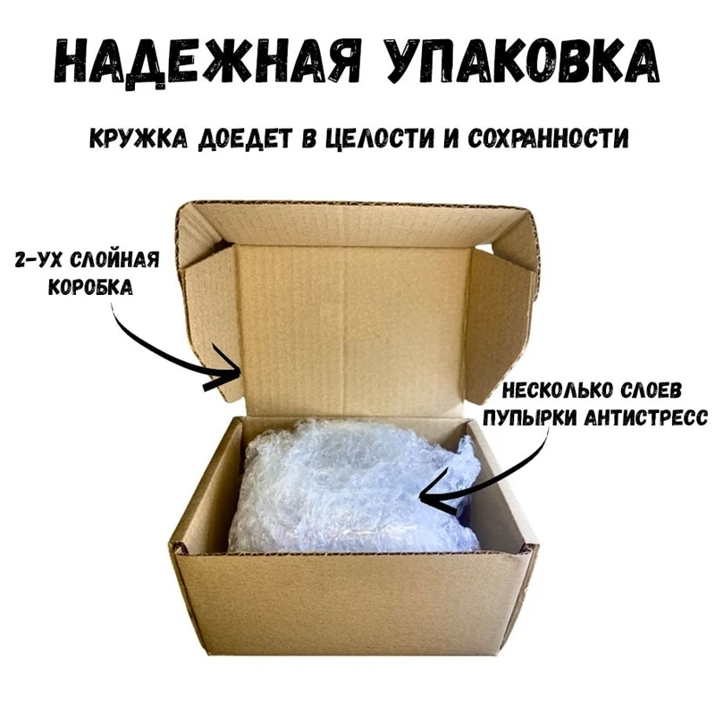 Смешной принт придется по душе людям любой возрастной группы. Кружка с прикольным дизайном точно дойдет к Вам в целости и сохранности, т.к. надежно упакована в 2 слоя пупырчатой пленки и многослойную коробку(броня).