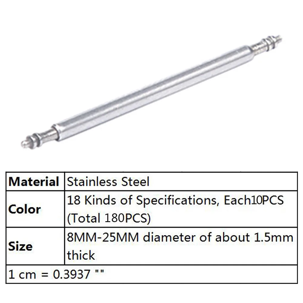 Аксессуары для часов 8 мм-25 мм, ремешок для снятия пружинных штифтов, pogo штифт, в коробке 180 шт. (10 шт. в сетку)