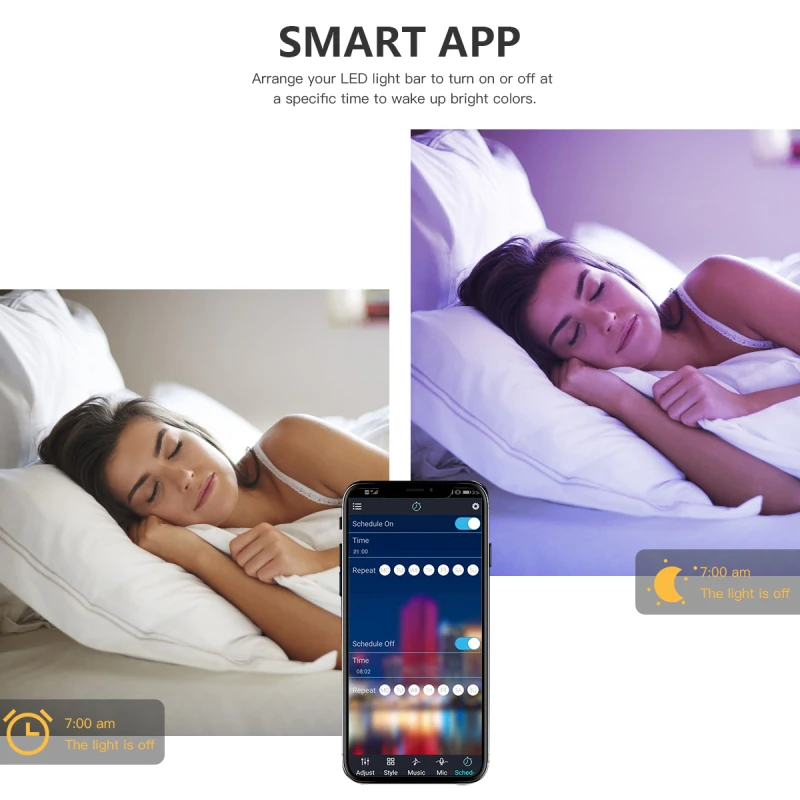 Умный выбор цветов: приложение может интеллектуально распознавать цвет s с ваших фотографий и применять их к вашим смарт-светодиодный полоскам. Выберите из 9 стилей, чтобы определить, как цвета улавливаются, помогая вам создавать эффекты освещения, которые вам нужны для любого случая.