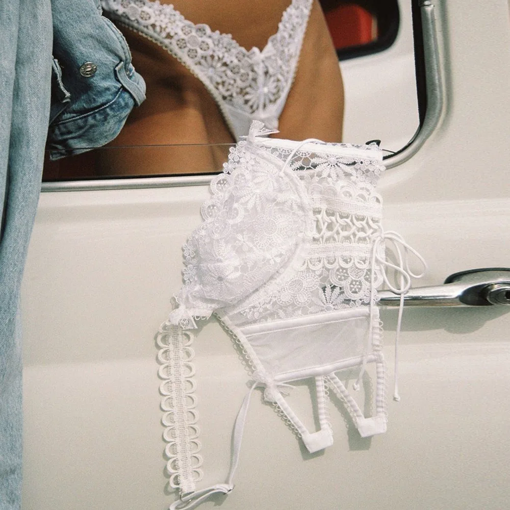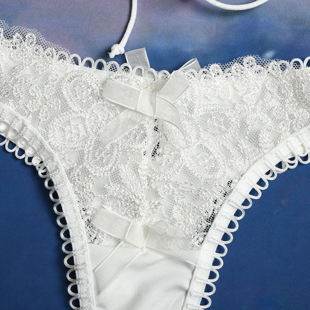 Комплект женского нижнего белья, белый кружевной хлопковый бюстгаль...