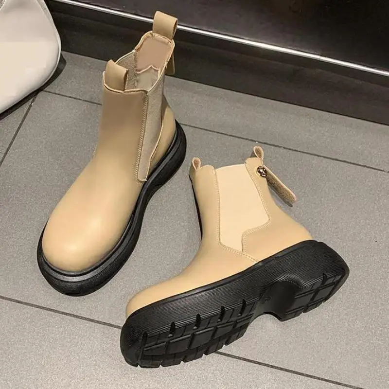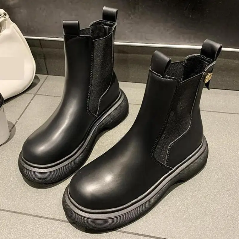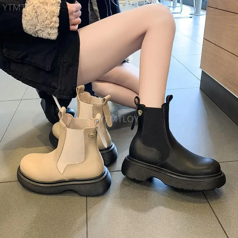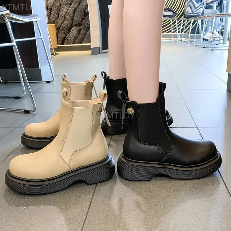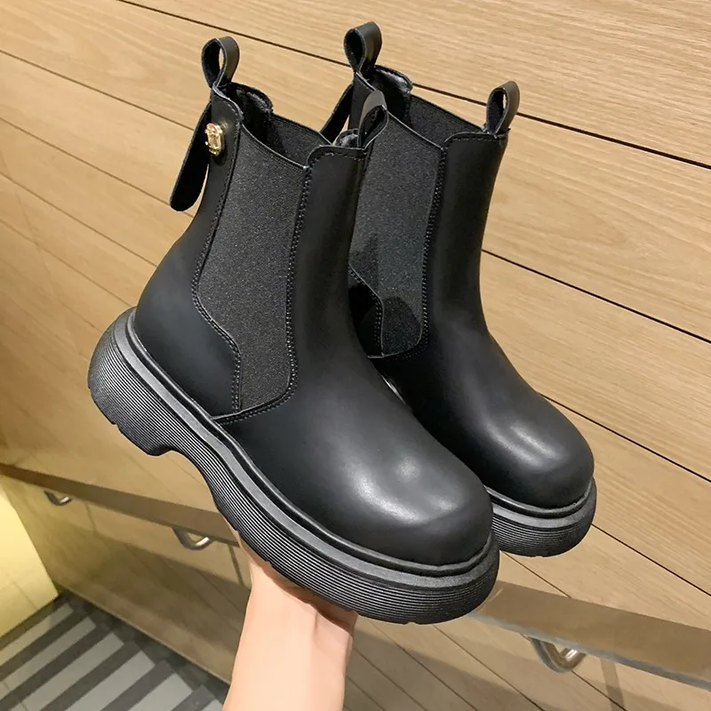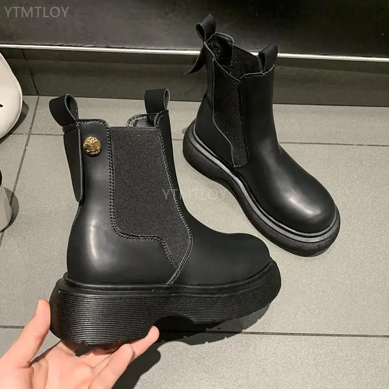 Новинка, роскошные женские ботинки челси, зимняя обувь на массивной подошве без застежек, брендовые дизайнерские женские ботинки с круглым носком