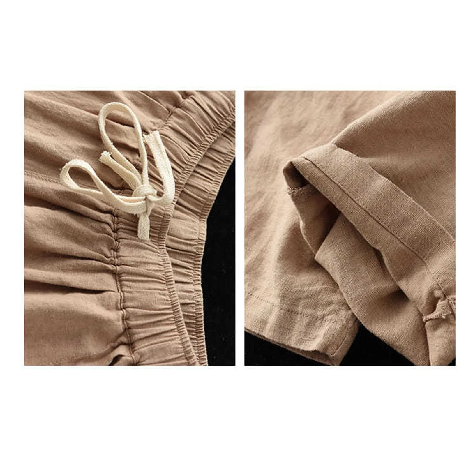 Женские свободные укороченные брюки для поездок, однотонные хлопковые льняные повседневные брюки с эластичным поясом, модные укороченные брюки с высокой талией и карманами
