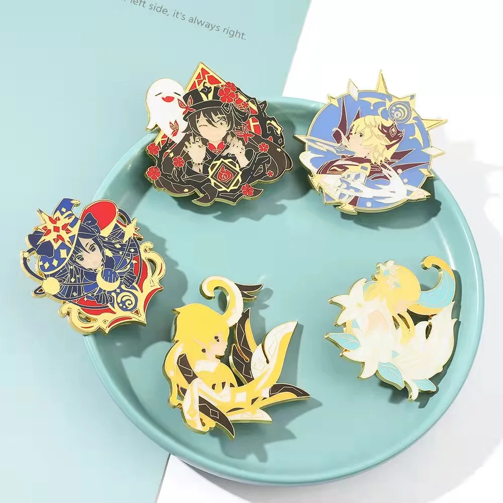 Броши Genshin ударопрочные на одежду, булавки в клетку, лацкан, аниме аксессуары, портфель Ху Тао, значки на рюкзак, ювелирные изделия, манга, подарок