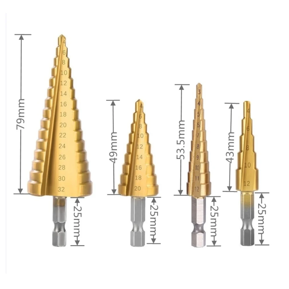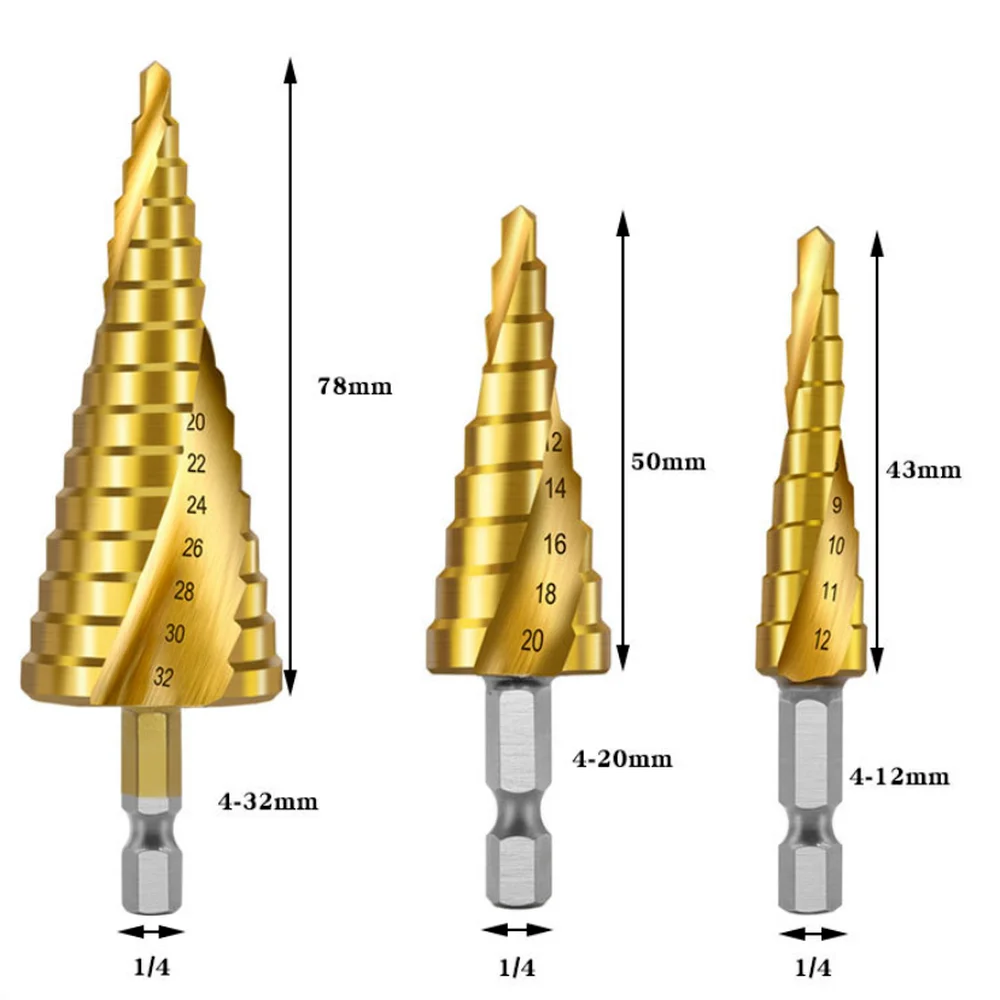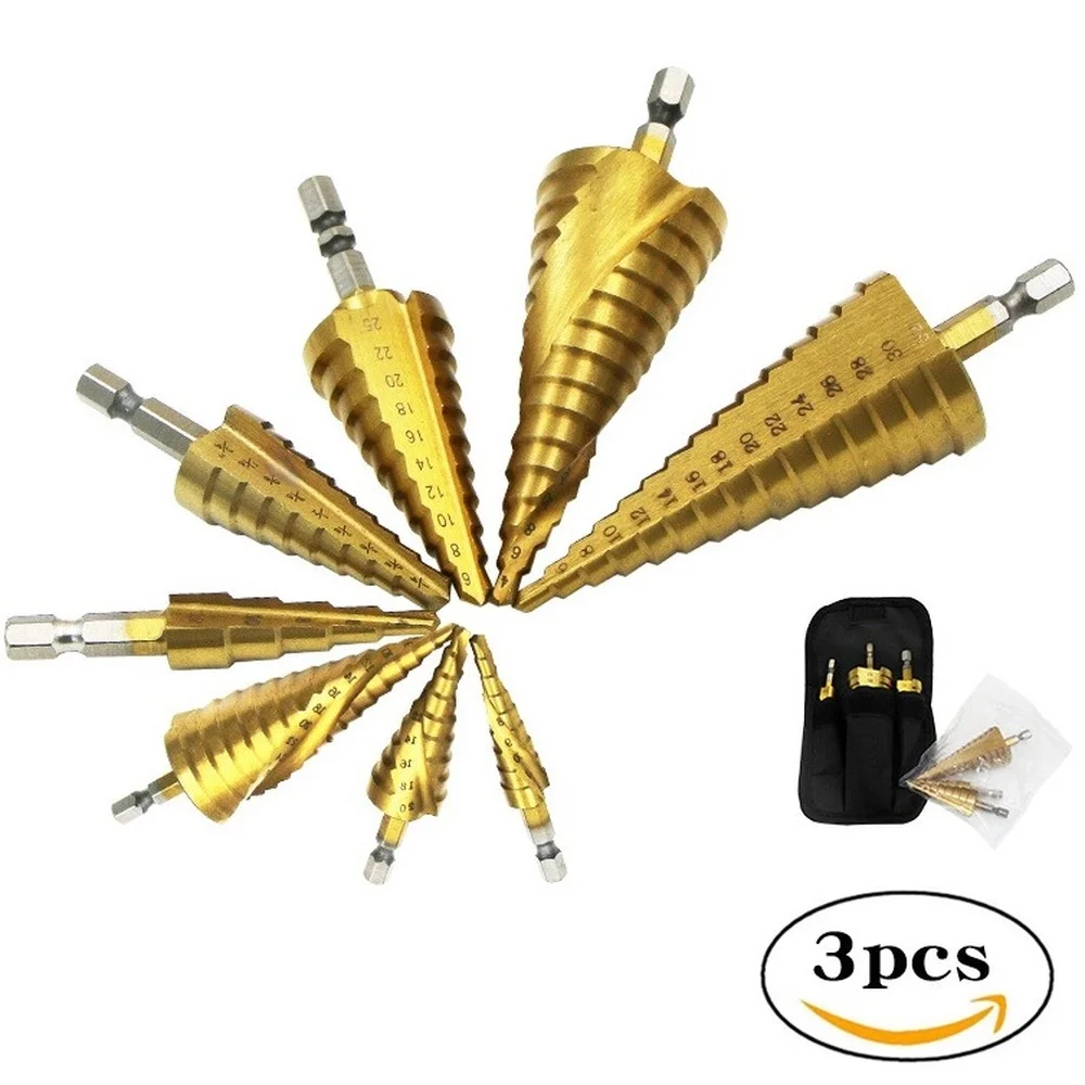 3 шт. титановое ступенчатое сверло из быстрорежущей стали 4-12 4-20 4-32 мм сверлильные электроинструменты металлическое высокоскоростное стальное Отверстие пила сверло деревообрабатывающие инструменты