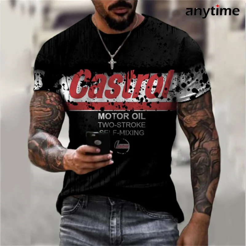 Новая летняя мужская одежда, модная футболка с коротким рукавом, пуловер с 3D-принтом гоночного масла, Повседневная футболка для мужчин, Топ