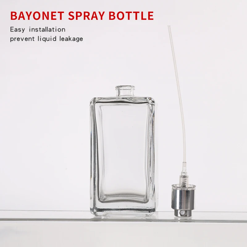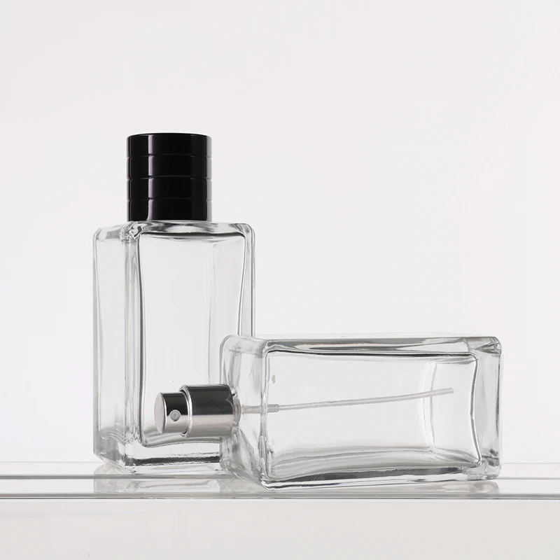 Бесплатный логотип на заказ, оптовая продажа, стеклянная квадратная Толстая стеклянная бутылка для духов с распылителем 100 мл, пустой косметический контейнер для женщин