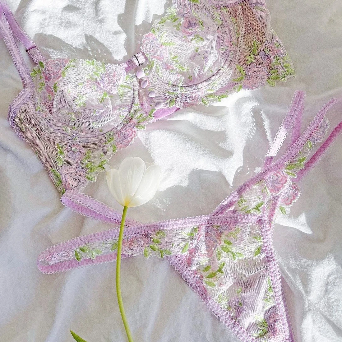 Женский комплект нижнего белья с цветочной вышивкой, тонкий прозрач...