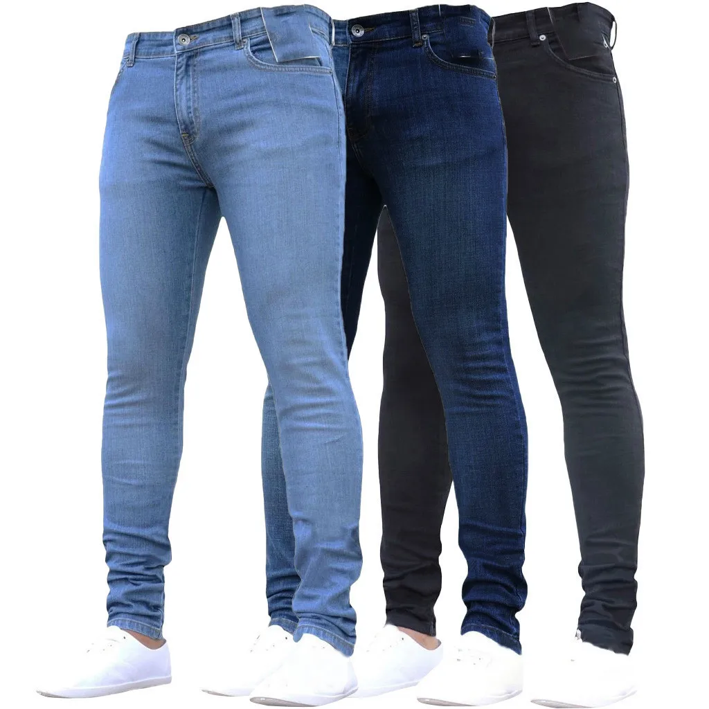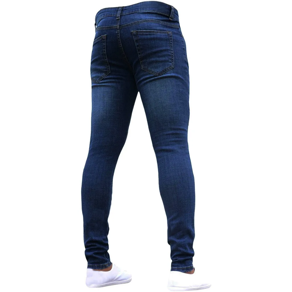 Мужские брюки с высокой талией, Стрейчевые джинсы на молнии, повседневные облегающие брюки, мужские джинсы-карандаш, джинсы скинни для мужчин
