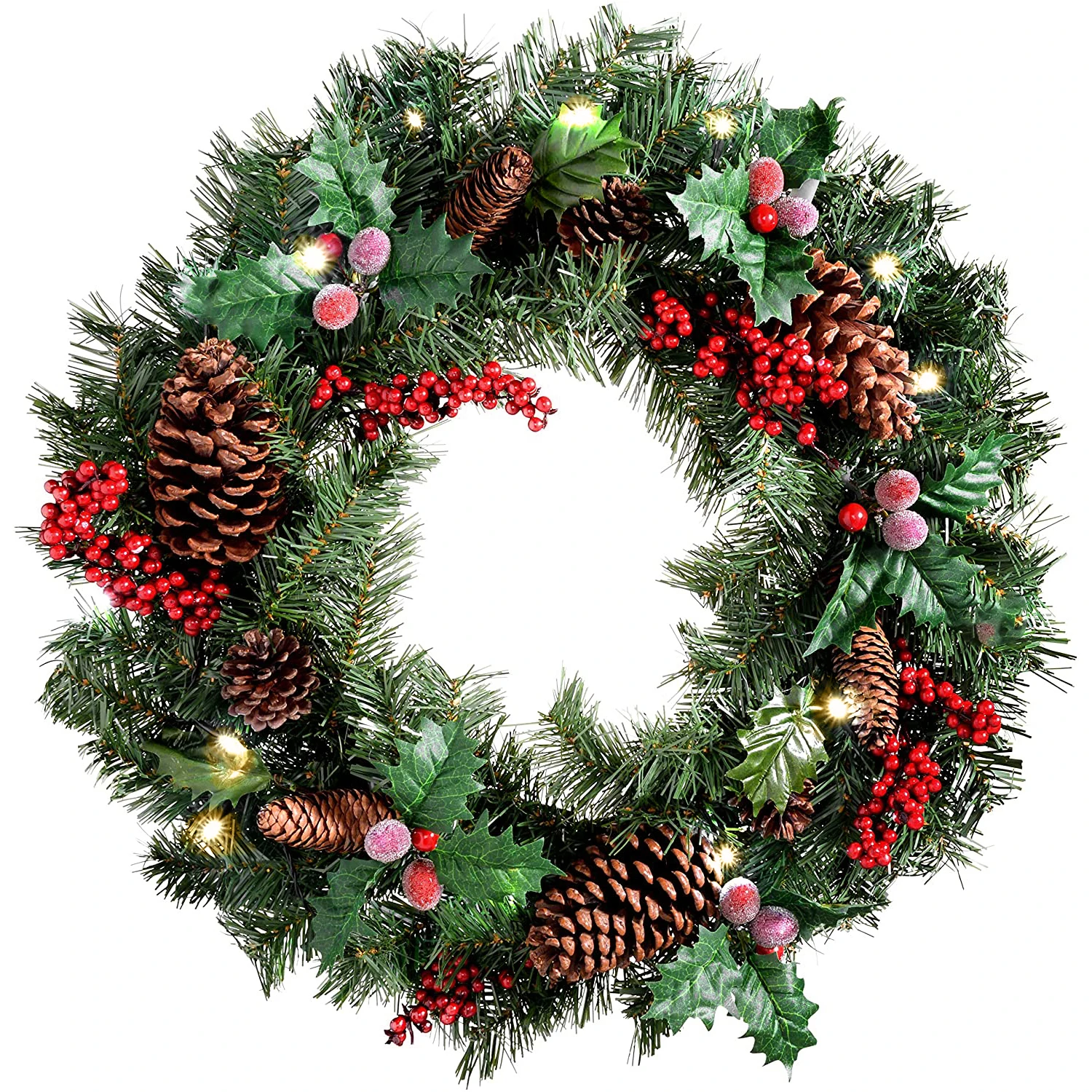 Этот венок дополняет тепло и естественные цвета и помогает добавить персонажа в ваш дом. Этот венок особенности замысловатые украшения и 10 предварительно горит светодиодный свет, обеспечивая при этом, что его видны все углы. Это очень гибкий смысл, вы можете разместить это в различных местах вокруг вашего дома.