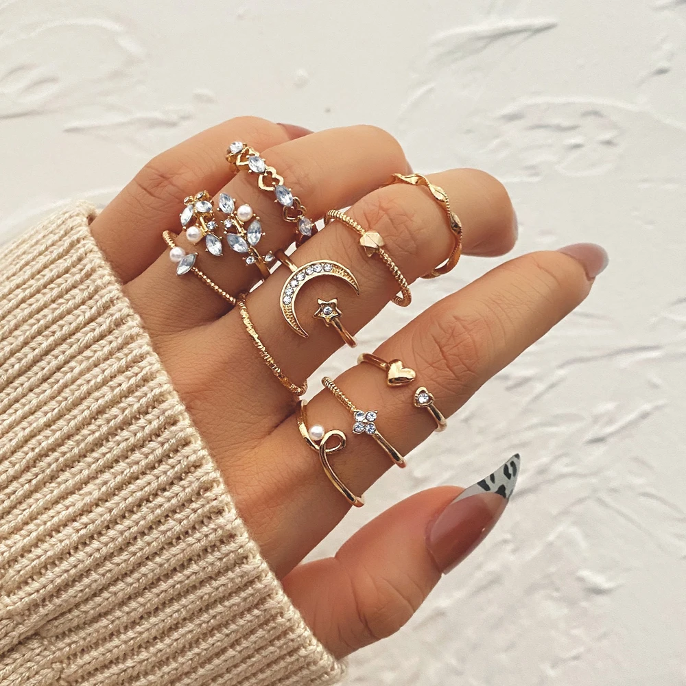 Женские кольца с Луной и звездами, комплект из колец золотистого цв...