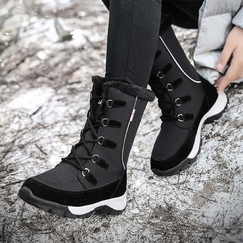 Женские ботинки 2021, зимняя обувь, женские ботинки с плюшевой подкладкой и меховой подкладкой, водонепроницаемые походные ботинки на шнуровке, удобная женская обувь
