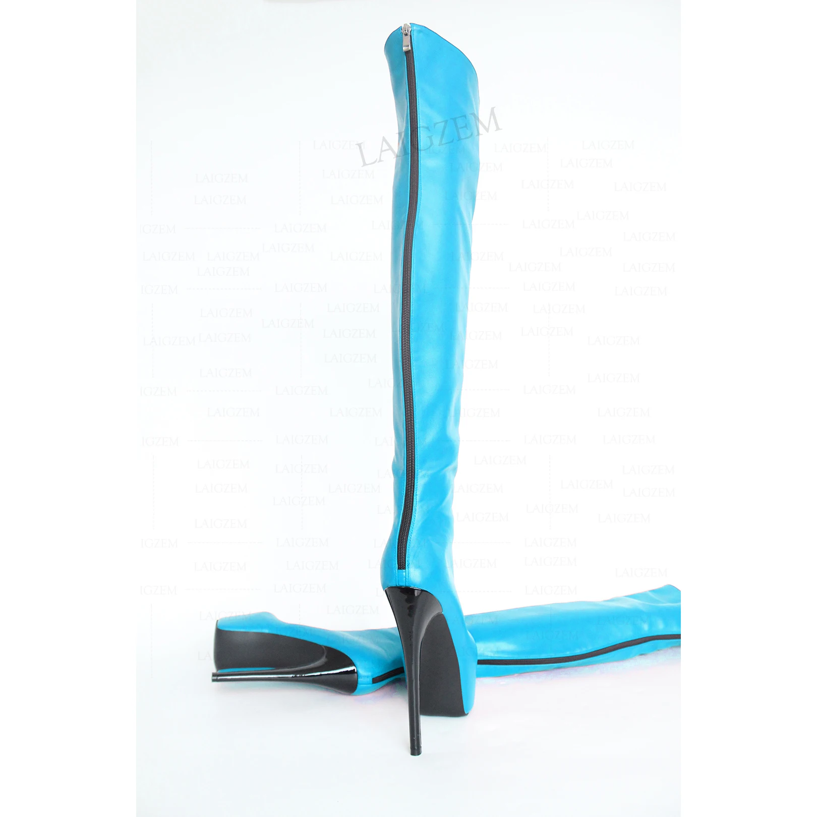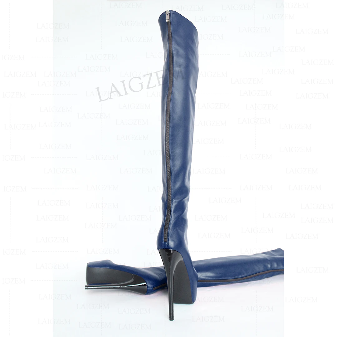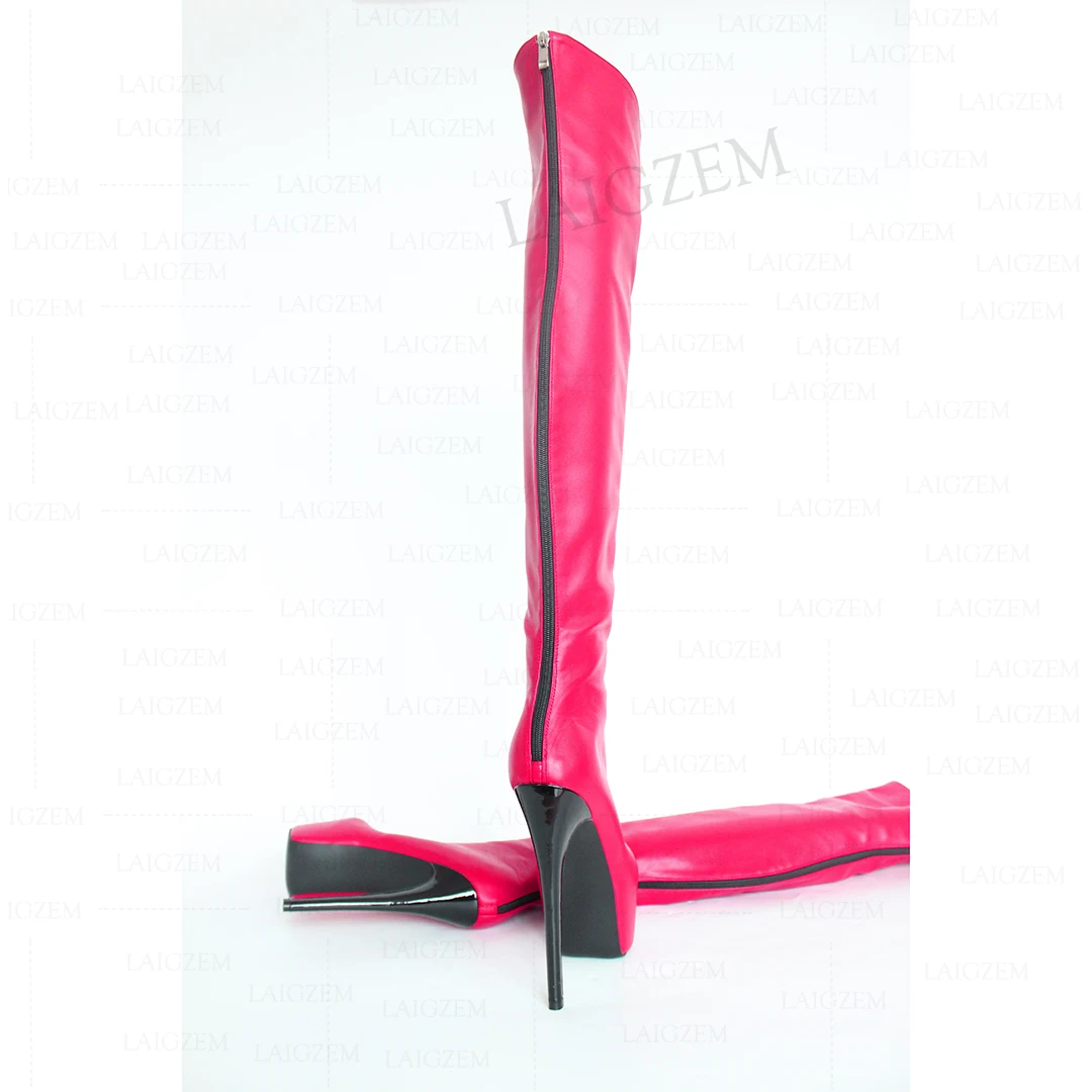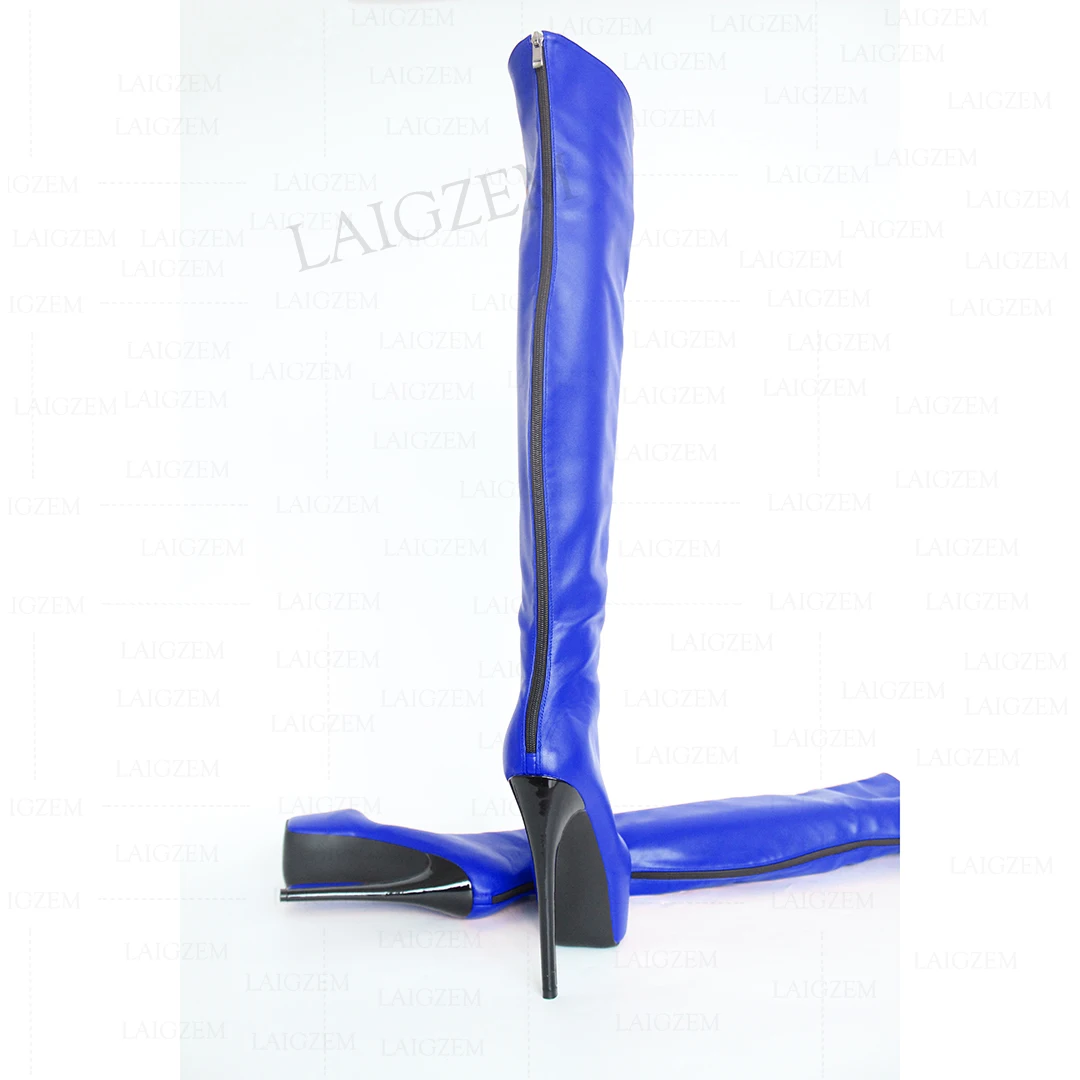 LAIGZEM/женские ботфорты выше колена высокие сапоги из искусственной кожи на платформе с молнией сзади пикантная обувь для костюмированной вечеринки женские большие размеры 41, 44, 46, 50, 52