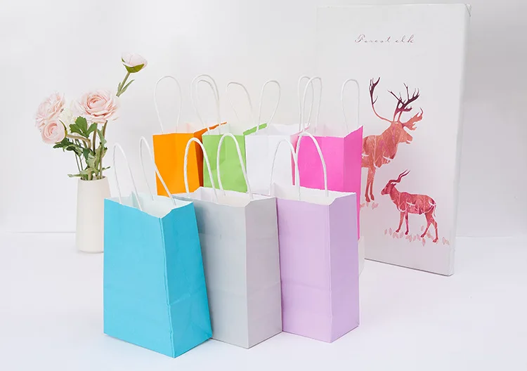 1020304050 шт.партия цветной пакет из крафт-бумаги с ручками 21x15x8 см праздничный Подарочный пакет высококачественные пакеты для покупок