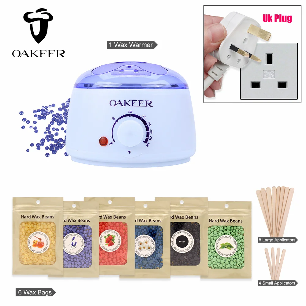 1 × Электрический горшок для подогрева воска (200 мл)6 × 50 г/1,8 oz твердый воск пакетов8 × большие деревянные аппликаторы4 × маленькие деревянные аппликаторы
