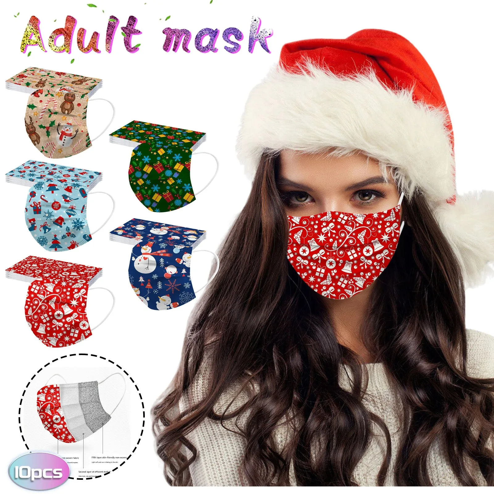 10 шт. Рождественская Универсальная высококачественная маска для взрослых с принтом Рождество Хэллоуин косплей маска для лица маски # p3