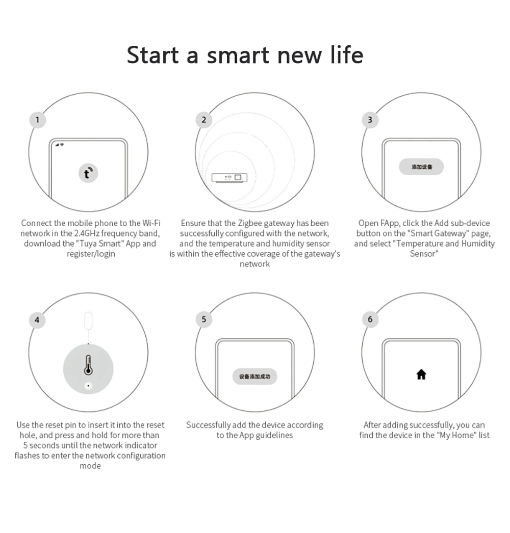 4. Новые добавлены с технологией компенсации температуры с Умной связью сцены с вашим кондиционером и увлажнителем воздуха, предлагая вашему дому с наиболее удобной температурой и влажностью, чтобы наслаждаться нашей умной жизнью.