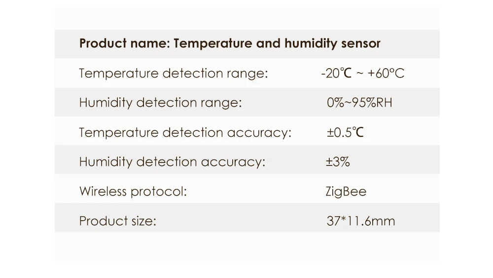 Product nameTuya ZigBee Temperature and Humidity Sensor