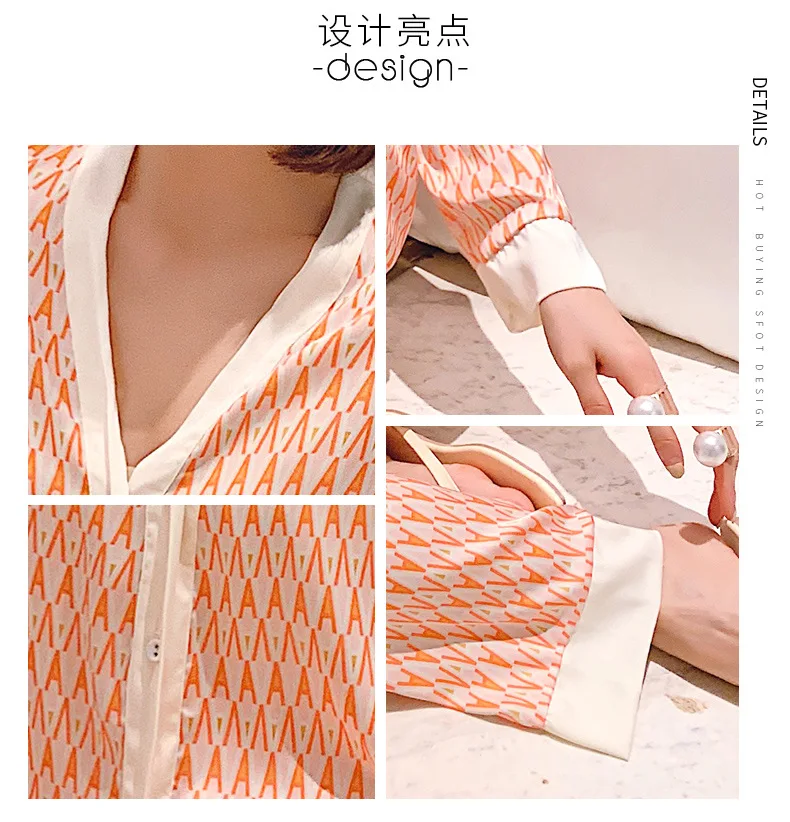 Шелковые пижамы, женские брюки с длинным рукавом, модная Свободная ...