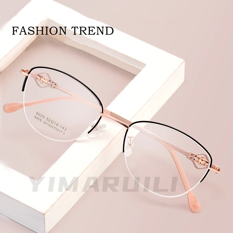 Женские Полуободковые очки YIMARUILI в стиле ретро с защитой от синего света, ульсветильник кие Металлические Модные оптические очки с оправой 8025Z
