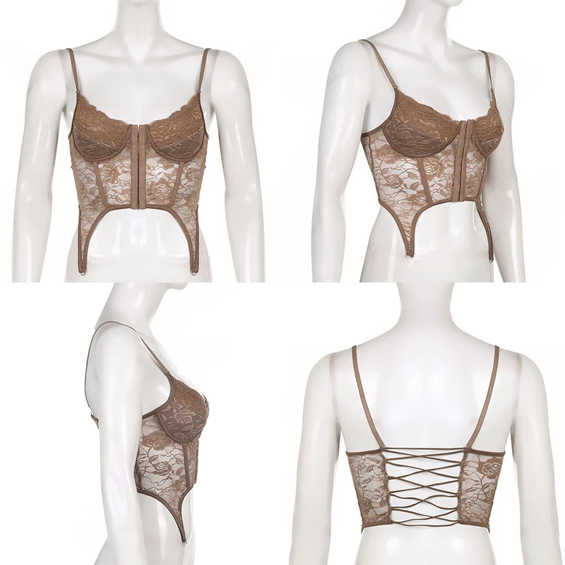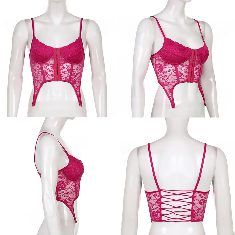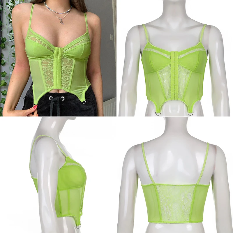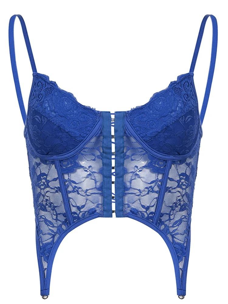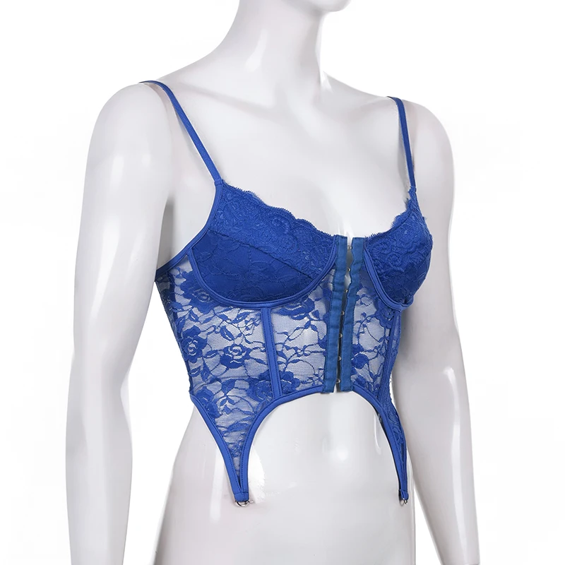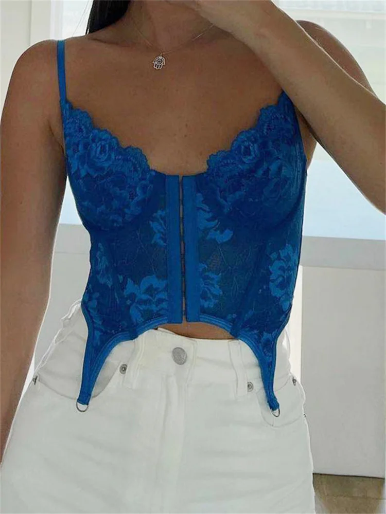Кружевной Цветочный Y2K шикарный облегающий камис, сексуальный ретро-корсет с феями, укороченный корсет, майки в стиле Харадзюку, однотонные синие рубашки cuteandpsy
