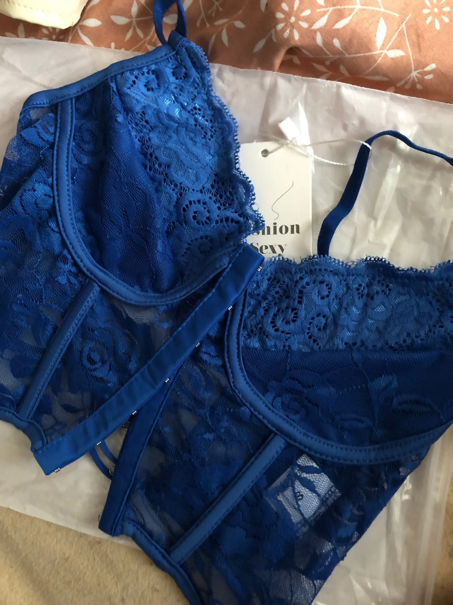 Как в описании. Размер правильный, а резинка на спине обеспечивает идеальную посадку. Цвет и соответствие и узоры кружева тоже. На груди нет арматуры.