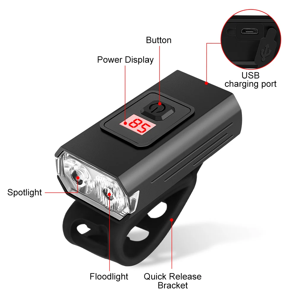Chip мощный чип, фитиль высокой яркости: уменьшает потребление энергии, очищает путь вперед (1000 люменов/200 метров в дальнем диапазоне)