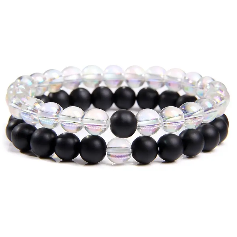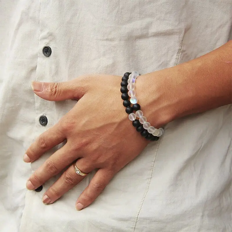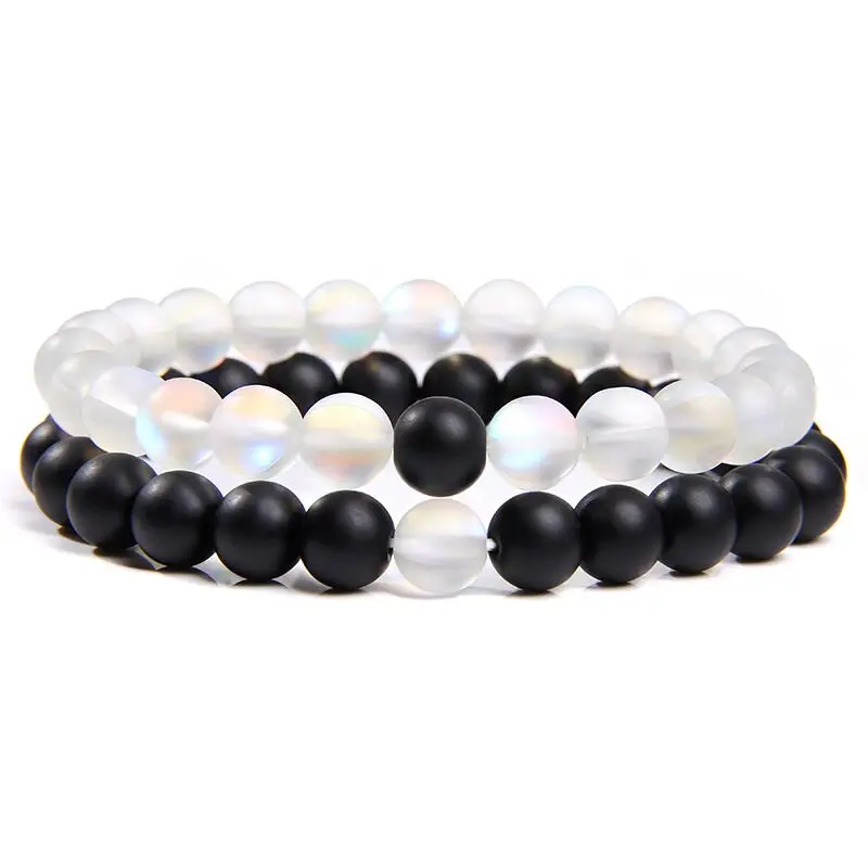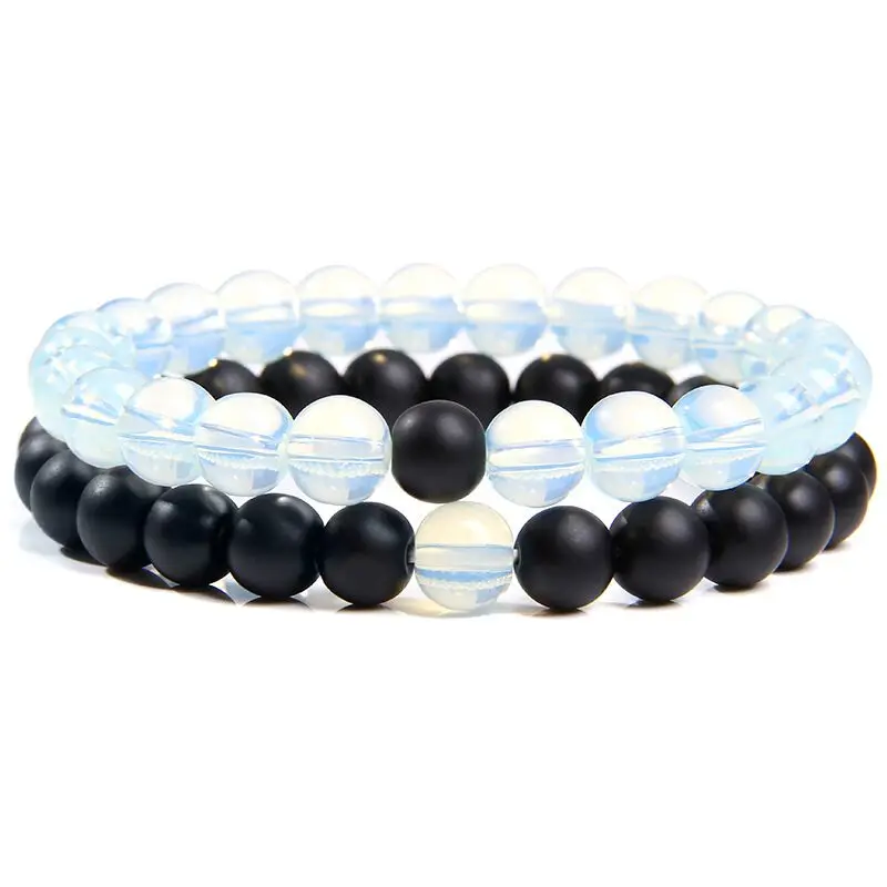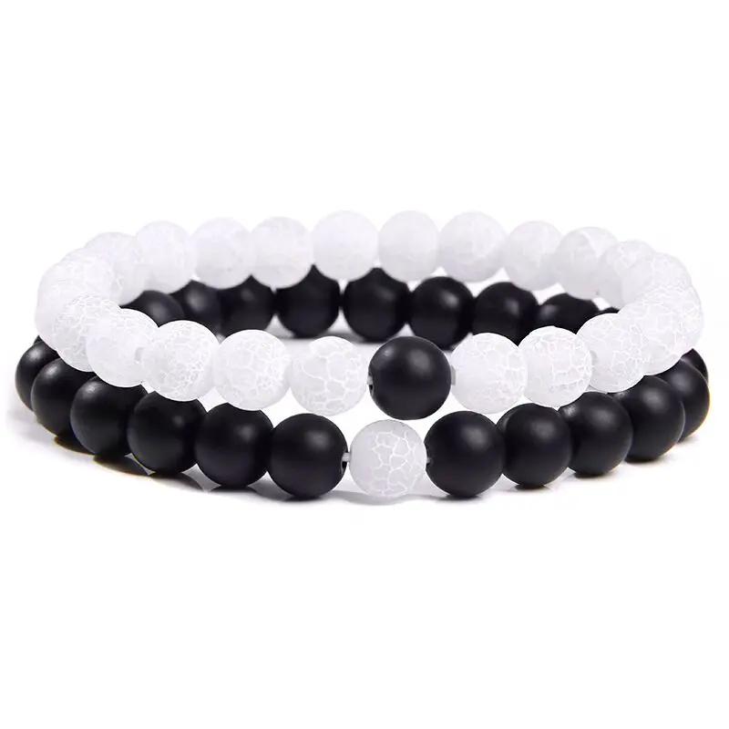 Набор браслетов для пар, черный, белый натуральный лавовый камень, тигровый глаз, бусины, аксессуары для мужчин и женщин, эластичная веревка, ювелирные изделия