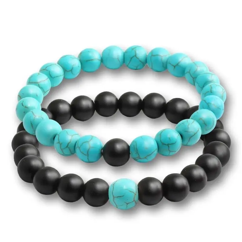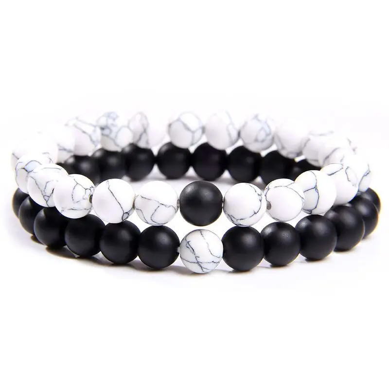 Набор браслетов пары расстояние черный белый натуральный Лава камень тигровый глаз бисерные браслеты для йоги для мужчин женщин эластичная веревка ювелирные изделия