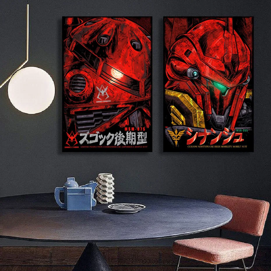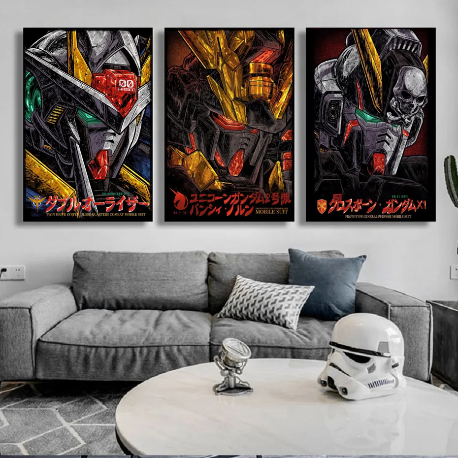 Классическое аниме меча воин Гандам, двухмерное искусство, холст, живопись, плакат, настенное искусство, детская комната, спальня, украшение для дома