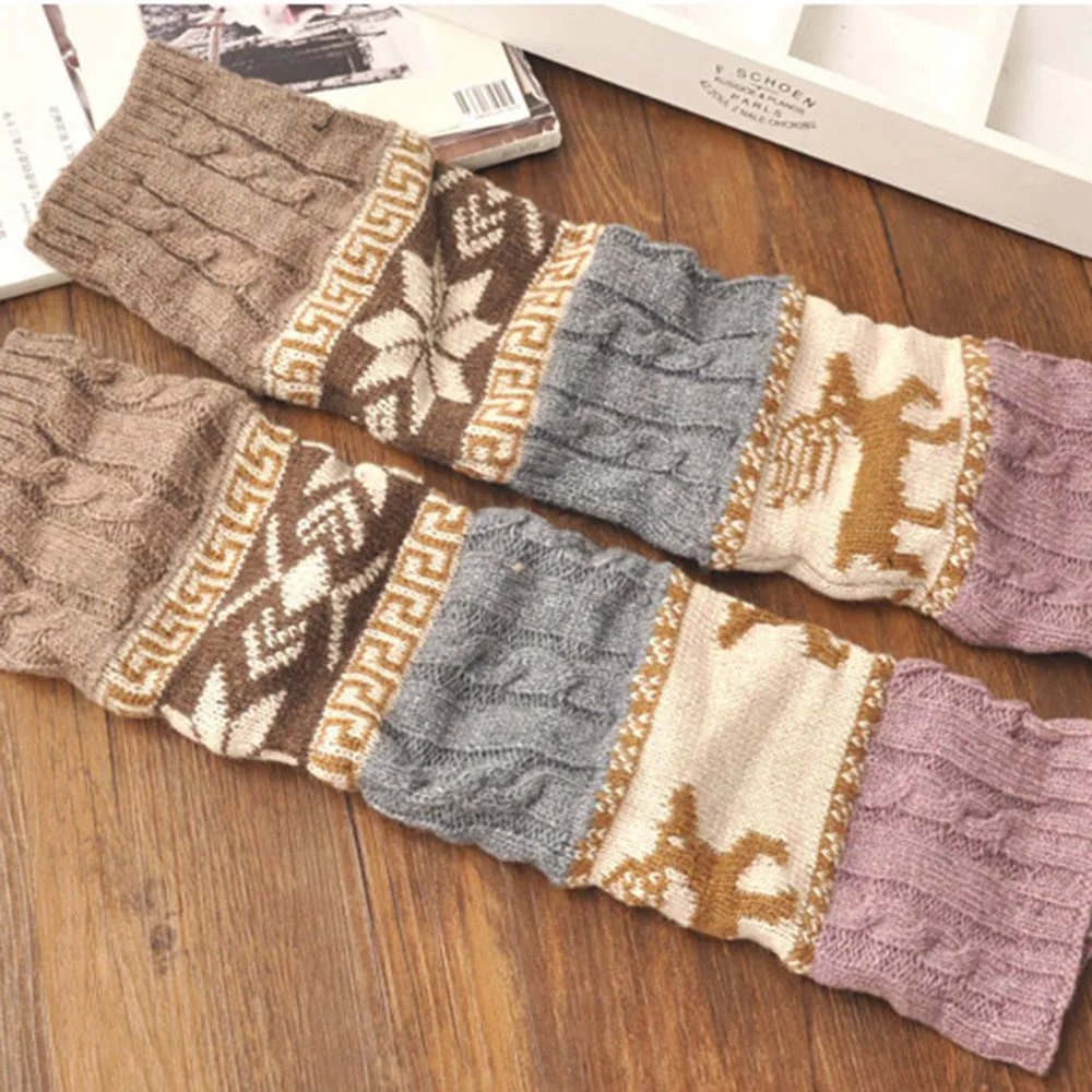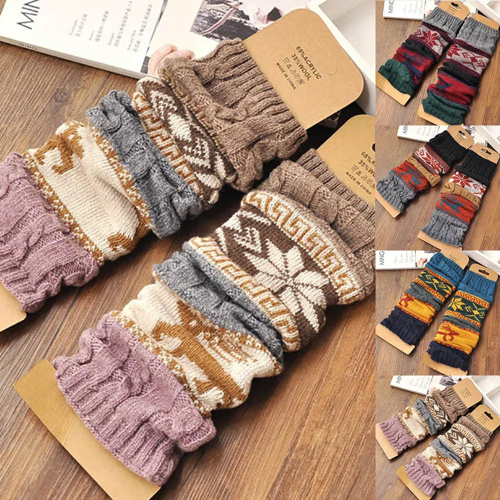 Женские Гетры, длинные носки, Рождественские Зимние теплые Гетры, вязаные крючком Длинные Вязаные гольфы, леггинсы, Гетры