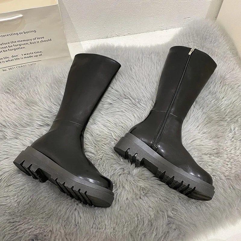 Высокие сапоги Челси на толстой подошве, черные, из натуральной кожи
