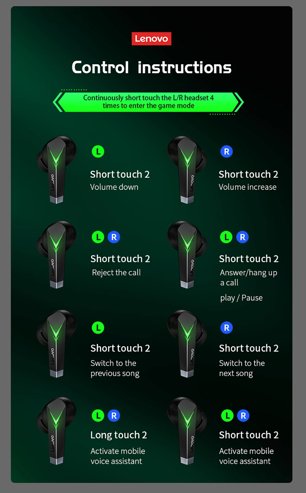 Игровые наушники Lenovo LP6 TWS, Спортивные Беспроводные наушники Bluetooth 5,0, игровая Спортивная гарнитура с низкой задержкой и микрофоном, 3D стерео бас