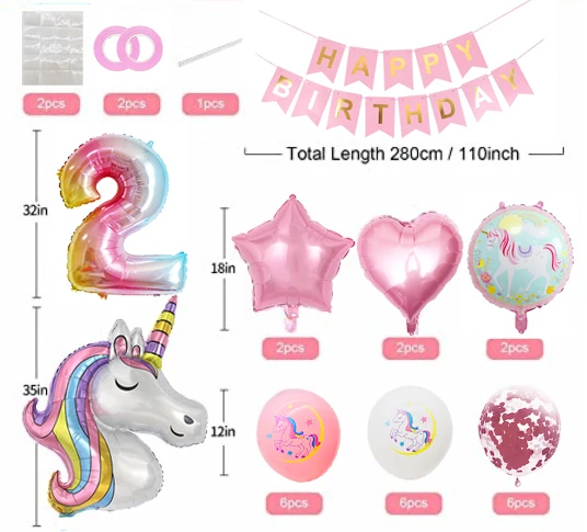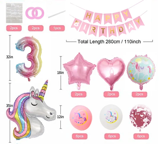 Набор для детского дня рождения с единорогом, на возраст 0-9 лет