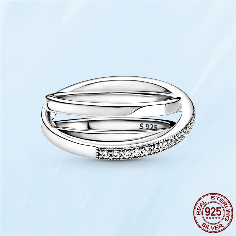 Женское кольцо с ПАВЕ, из серебра 925 пробы, с тремя кольцами