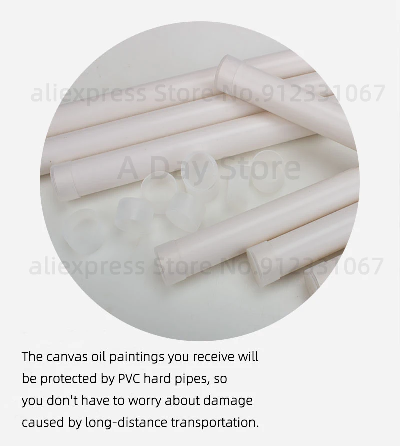 Картина маслом на холсте, которую вы получите, будет защищена PVChard pipes, поэтому вам не придется беспокоиться о повреждении, вызванном транспортировкой на большие расстояния.