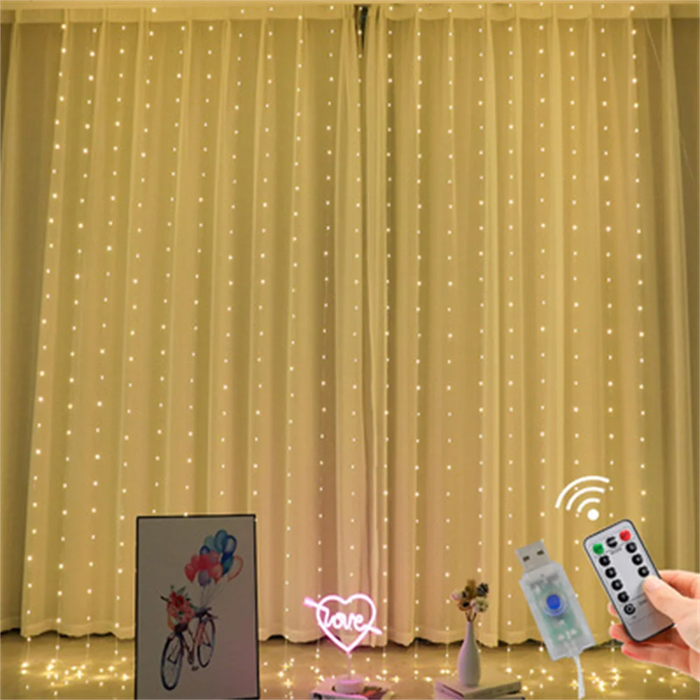 СВЕТОДИОДНАЯ Гирлянда для занавесок 3 м, светодиодная Usb-гирлянда, Сказочная гирлянда с дистанционным управлением, рождественские украшения для дома, гирлянда на окне