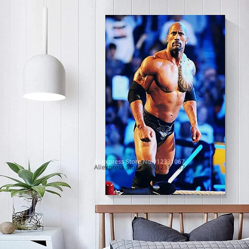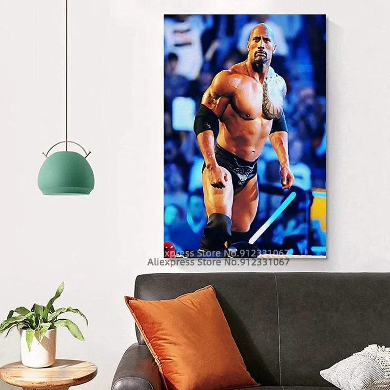 Художественный постер Dwayne The Rock Johnson WWE на холсте и настенные светящиеся плакаты, картина для гостиной, современный декор для спальни