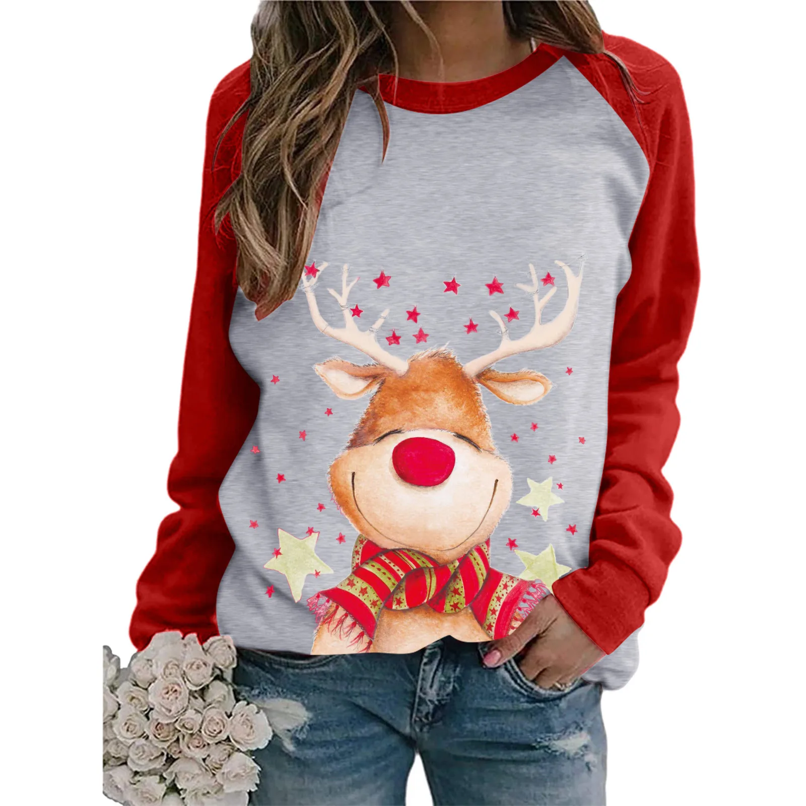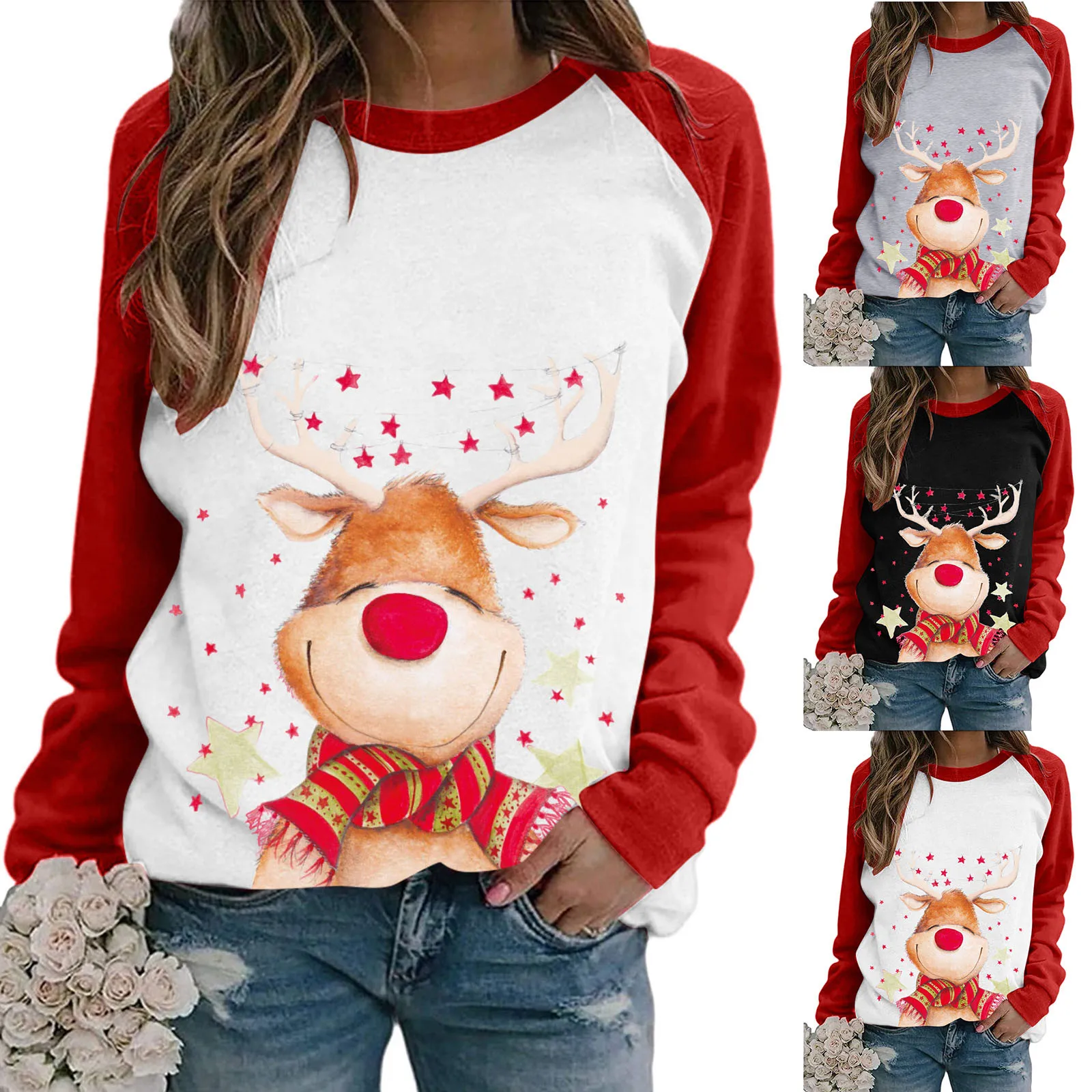 Забавный Милый принт лося с длинным рукавом Рождественская женская ...