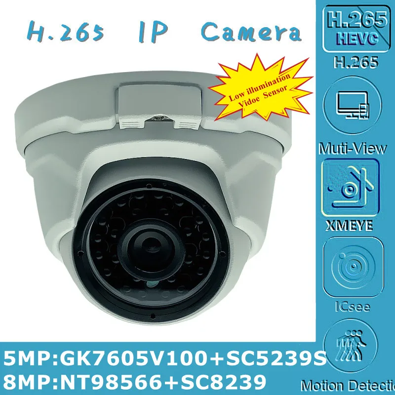 Металлическая купольная IP-камера H.265 85MP 4K 940nm с невидимым светом, NT98566 + SC8239 3840*2160 Onvif XMEYE, радиатор с функцией обнаружения лица и радиатором P2P