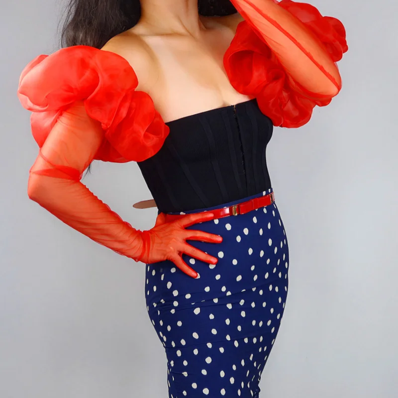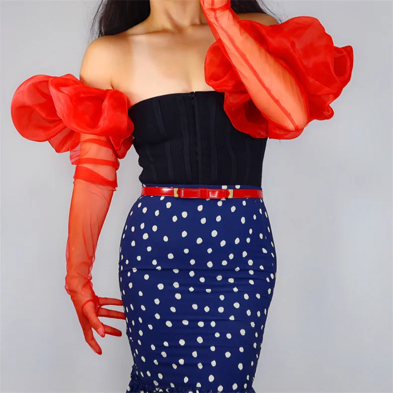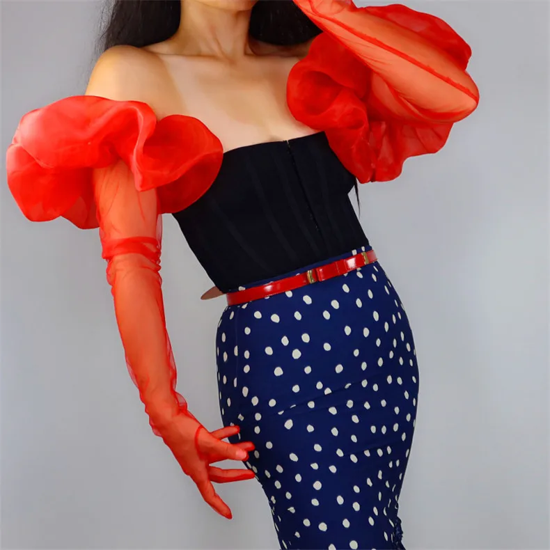 Тюлевые перчатки женские очень длинные 3D большие кружевные манжеты 90 см кружевные свободные черные вечерние сетчатые женские перчатки с сенсорным экраном WWS23