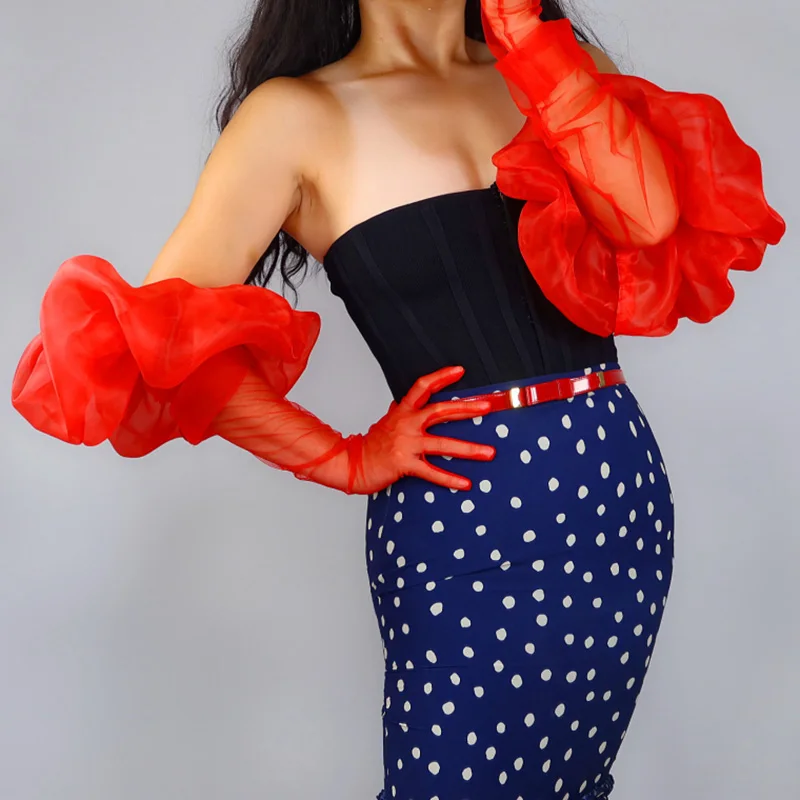 Женские тюлевые перчатки, сверхдлинные большие кружевные манжеты с 3D эффектом, 90 см, кружевные свободные черные вечерние сетчатые женские перчатки для сенсорного экрана WWS23