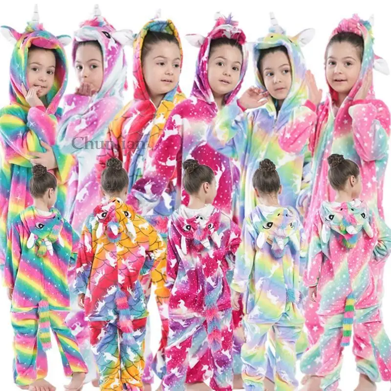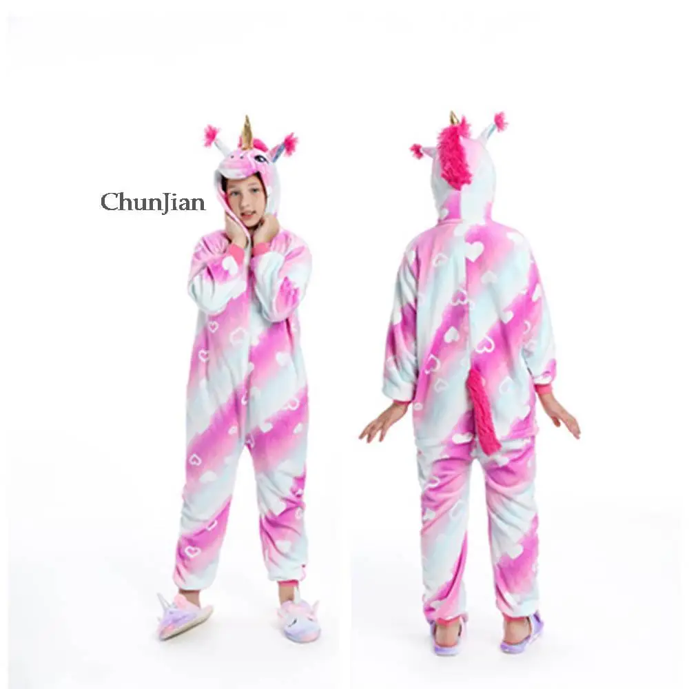 Пижама в виде единорога для девочек, кигуруми, детские комбинезоны ...